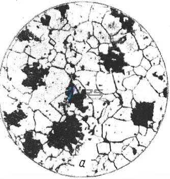 Чугунами называют сплавы Fe и С, которые содержат > 2,14% углерода. Особенность чугунов — присутствие эвтектики структуре. Эвтектикой называют смесь двух фаз, в чугунах это аустенит и цементит. Ввиду сочетания высоких литейных свойств с хорошей прочностью и износостойкостью, из чугунов выполняют детали, у которых нет жестких требований к точности и габаритам отливок. Содержащийся углерод в чугунах присутствует в виде графита. Графитовые включения повышает обрабатываемость за счет сниженной твердости. Кроме того, чугуны показывают наилучшие литейные свойства из всех сплавов на основе железа. Классифицируют четыре разновидности чугунов: серые, высокопрочные, ковкие и белые. В серых чугунах (СЧ) в структуре графит присутствует в виде пластин. Белые чугуны отличаются хлопьевидными графитными включениями. А графит шаровидной формы имеют высокопрочные чугуны (ВЧ). Определить вид чугуна можно по микрошлифам отливок с помощью микроскопа.