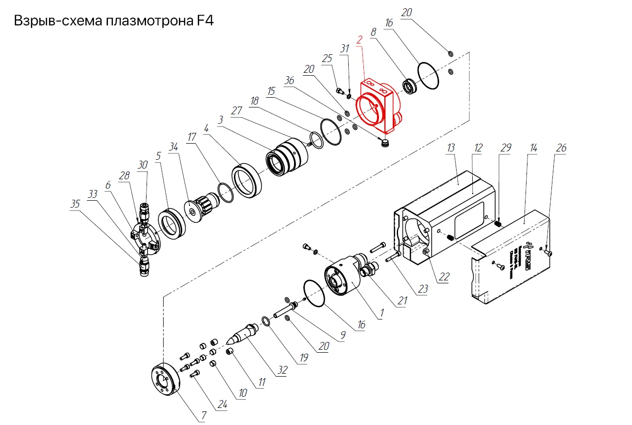 IRS-100001 Корпус центральный IRS F4MB-XL совместим с моделью плазматрона F4, на взрыв-схеме плазмотрона отображается позицией 2