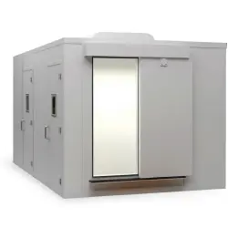 Наши камеры представляют собой модульную панельную конструкцию. Каждая панель изготовлена из многослойной конструкции с набивкой из звукопоглощающих материалов разной плотности, проложенных между наружным листом из нержавеющей стали и внутренней обшивкой из перфорированного стального листа.