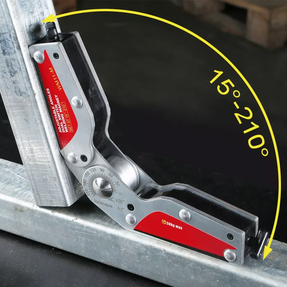 - Регулируемый магнитный фиксатор позволяет работать с углами от 15° до 210°;