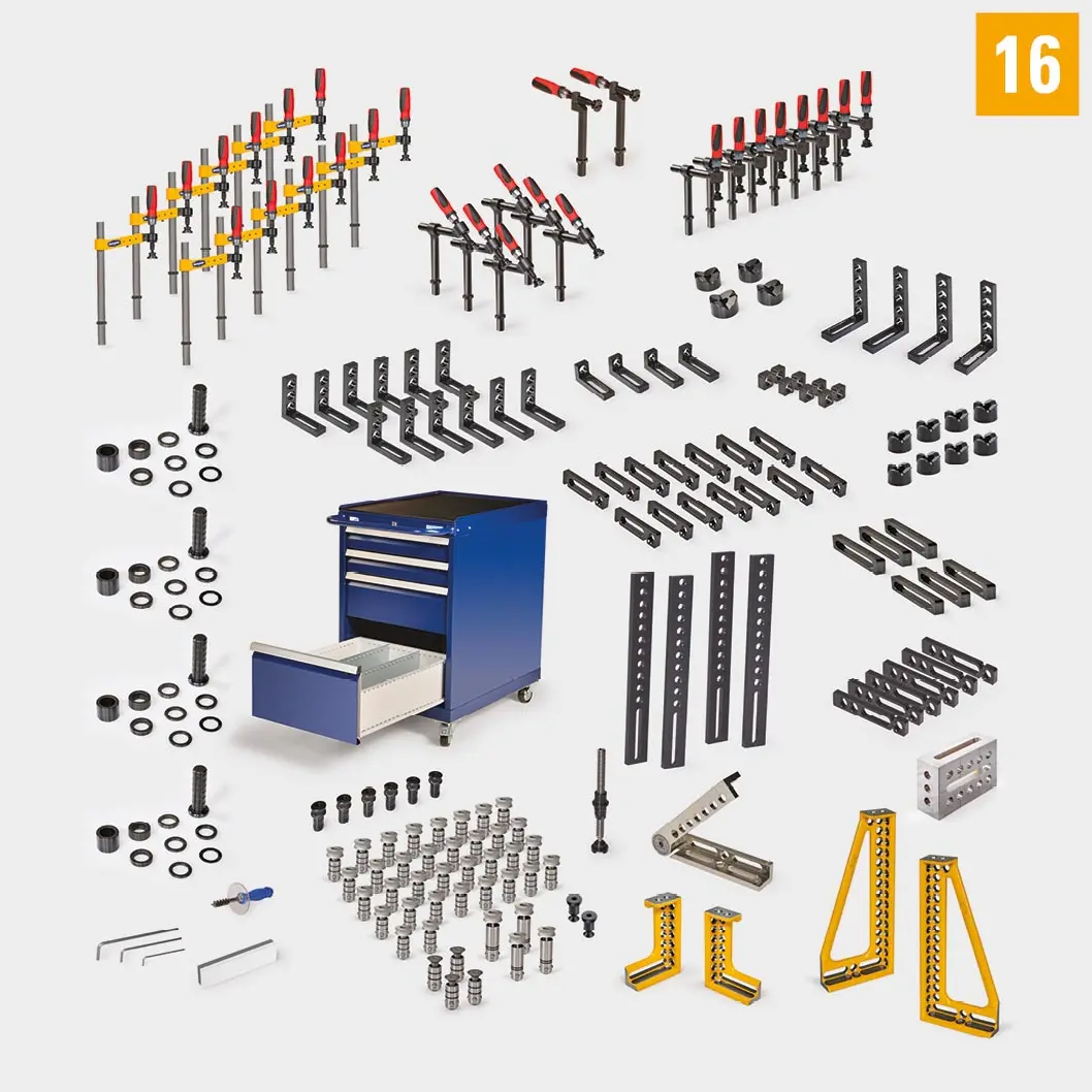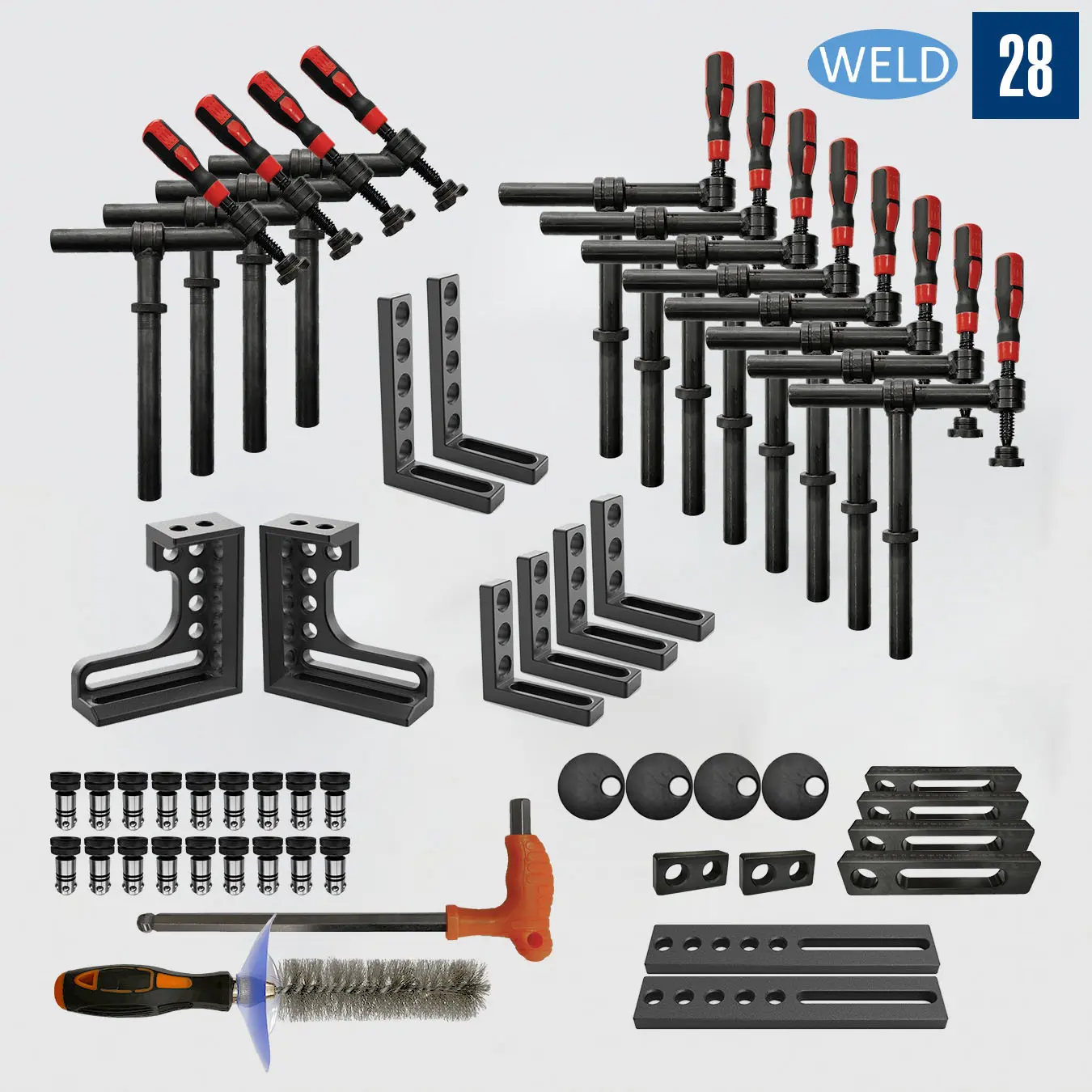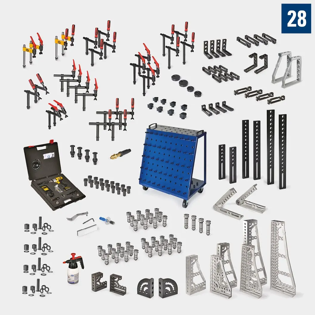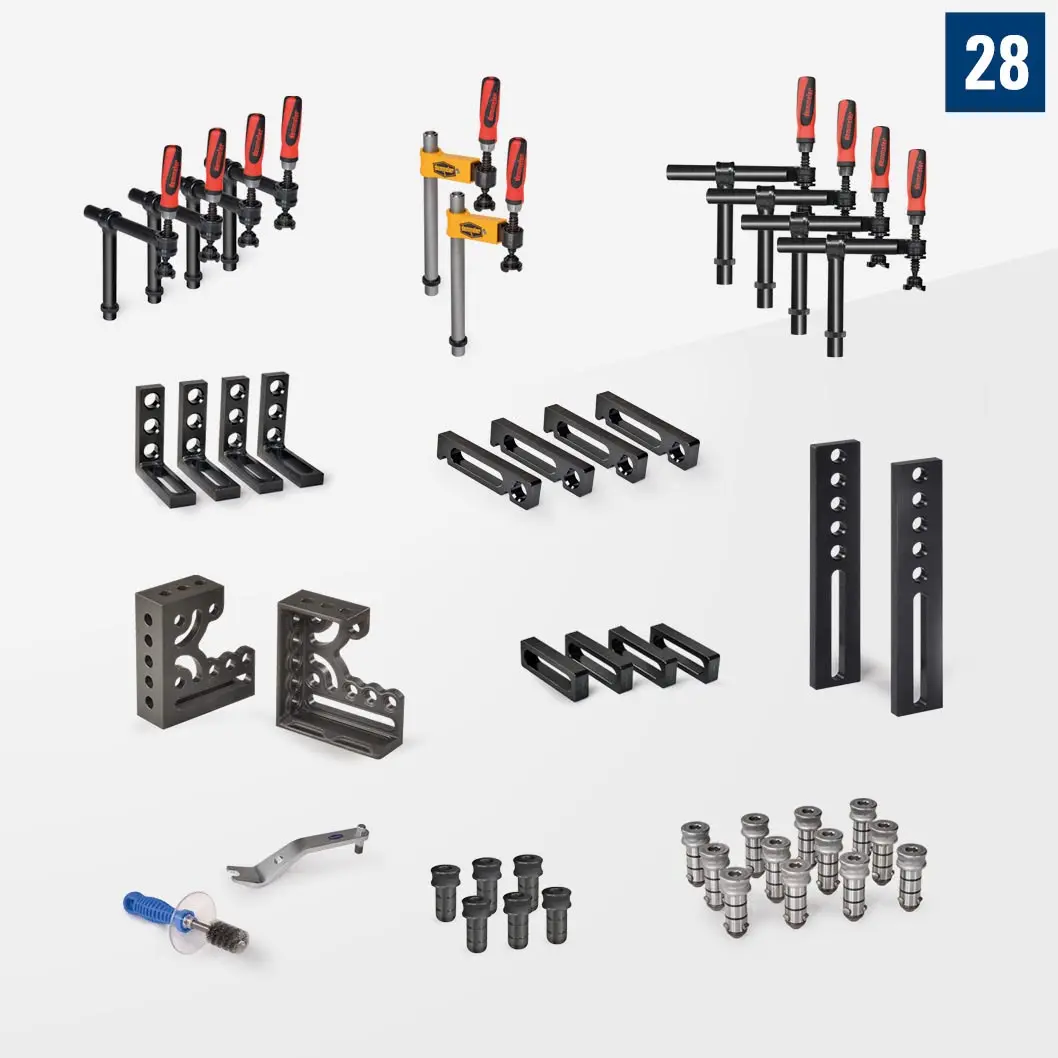 - Модульная конструкция и гибкость: Главная особенность 3D сварочных столов — это их модульность. Столы снабжены отверстиями и пазами, которые позволяют гибко изменять конфигурацию рабочего пространства, подстраивая его под нужды конкретной задачи. Вы можете легко комбинировать различные элементы и фиксировать заготовки под любыми углами, что значительно расширяет возможности сварки.