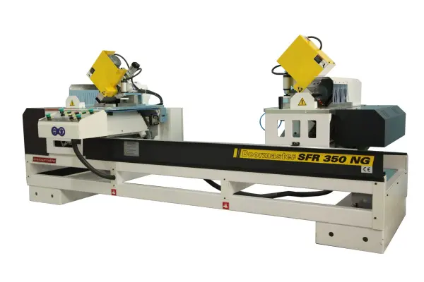Пилочные, заусовочные станки для производства дверей и коробок - станки, выполняющие операции по резке и сверлению для угловых соединений под углом 45° в деревянных дверных коробках, станки для резки и сверления тонких дверных рам из дерева или МДФ с новой системой крепления для тонких деревянных дверных коробок, а также станки для непрерывной обработки, предназначенные для фрезерования дверей и дверных коробок, двухсторонней резки под углом 45°-90° и расточки.