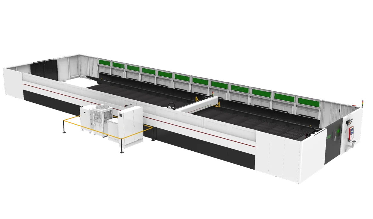 - Высокая жесткость поперечной балки обеспечивает возможность замены стандартной лазерной головы на 3D голову для обеспечения возможности обработки фасок.