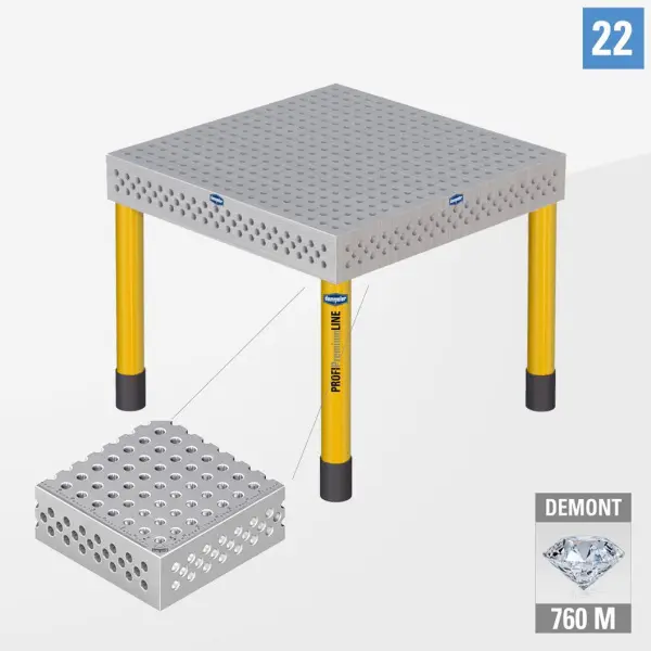 PROFIPremiumLINE PP 3D Сварочный стол 22 1000х1000 Азотированный DEMONT 760 M без опор PP22-01001-50
