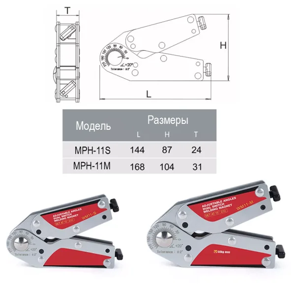 MPH-5S Универсальный магнитный фиксатор для сварочных работ с одиночным переключателем, усилие 30 кг