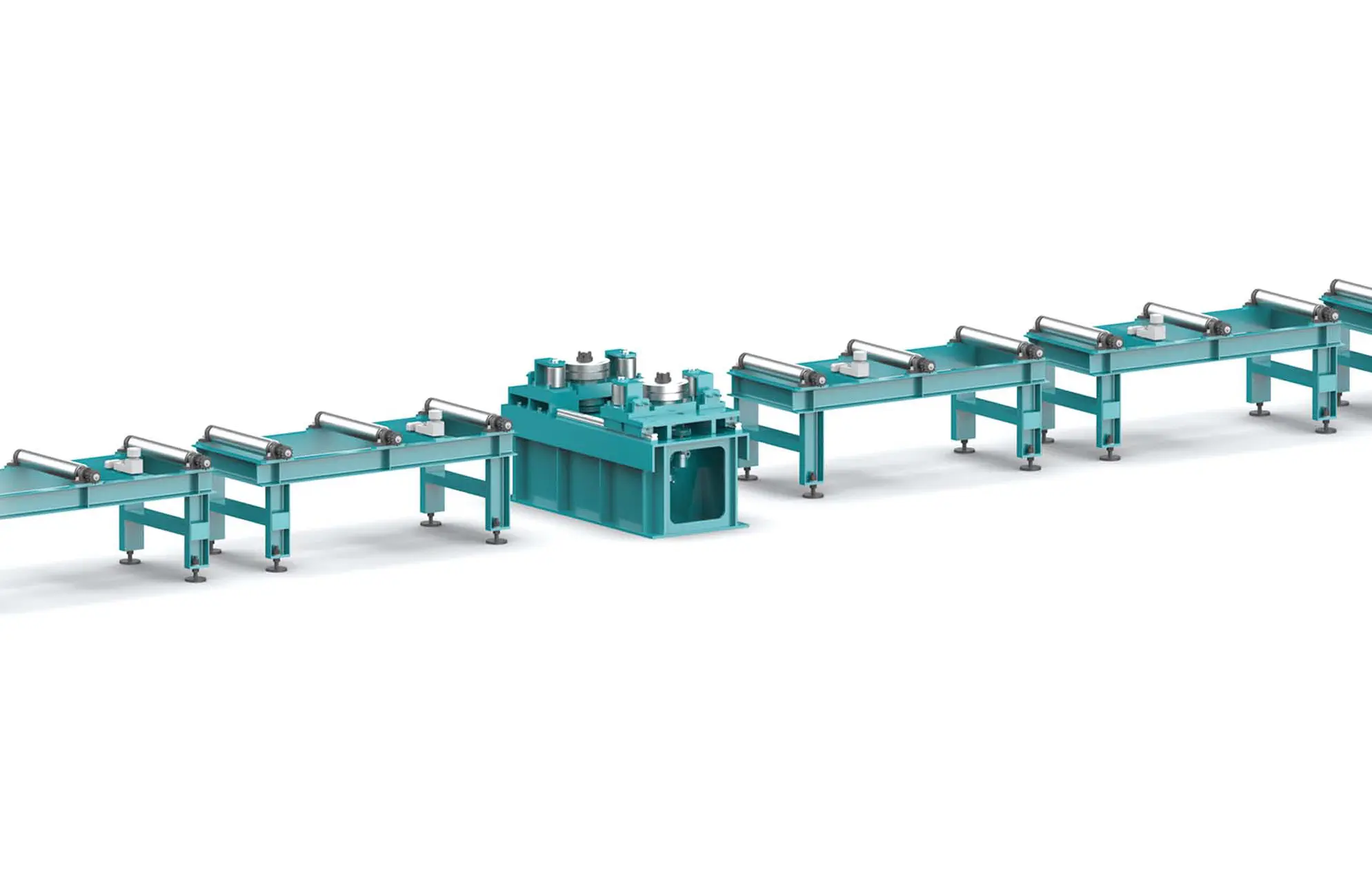 Данный станок предназначен для снятия фасок с полки тавровой балки и состоит из следующих основных компонентов: основной рамы, левого и правого прижимных механизмов, верхних и нижних опорных роликов, гидравлического привода, верхнего и нижнего прижимных устройств, переднего и заднего конвейерных роликовых столов, автоматического телескопического штока и гидроцилиндров.