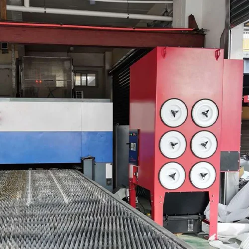 Промышленная фильтрационная установка предназначена для очистки воздуха от вредного дыма и пыли, образующихся при лазерной маркировке, гравировке, резке и сварке. Дым и пыль, образующиеся при работе лазерного станка, всасываются вентилятором в пылеуловитель оседающего типа по специальному каналу, а искры и крупные частицы металлического мусора в отходящих газах предварительно отделяются с помощью искроуловителя, чтобы защитить фильтрующий элемент пылеуловителя и предотвратить возгорание прибора при удалении пыли. Затем дым поступает в камеру для загрязненного воздуха пылесборника, а твердые частицы, содержащиеся в дымовых газах, фильтруются и пропускаются через огнезащитный фильтрующий картридж. Чистый воздух очищается фильтрующим картриджем, а затем выбрасывается вентилятором.