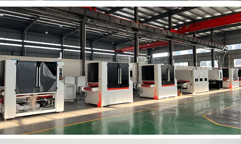 Широкая абразивная лента + универсальная роликовая щетка, одиночная или множественная комбинация. Четыре колонны синхронного подъема, независимый подъем позиции роликовой щетки, управление подъемом сервопривода, точность 0,01 мм. Ширина обработки оборудования: 800 мм, 1000 мм, 1350 мм, 1600 мм