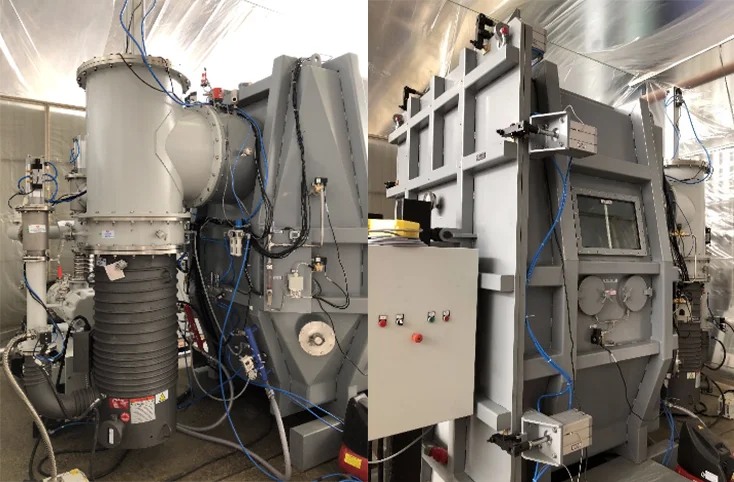 Камера установки выдерживает вакуум не менее 5х10-5 мм рт. ст. Скорость натекания в вакуумную камеру 0,7 л·Па/с, время откачки до рабочего вакуума – 30 мин, расход газа за цикл – 8 м3.