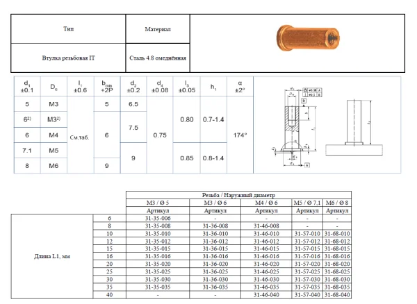 Внутренняя резьба втулок холоднокатаная (предел допуска 6g). Для поверхностно обработанных шпилек может быть достигнут предел допуска 6h. Мы поставляем втулки со специальными внутренними резьбами по запросу.