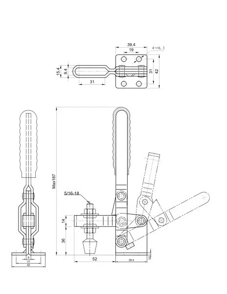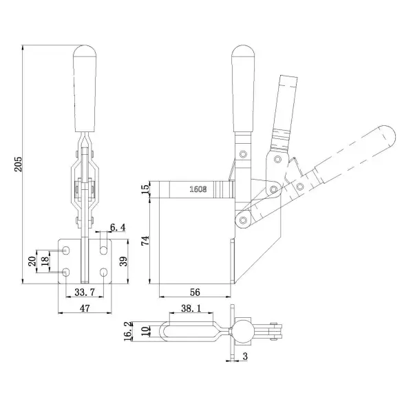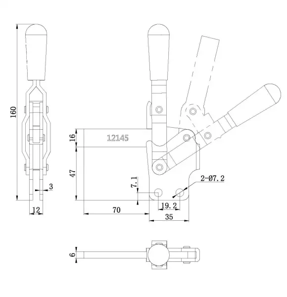 Угол раскрытия рукоятки, град.