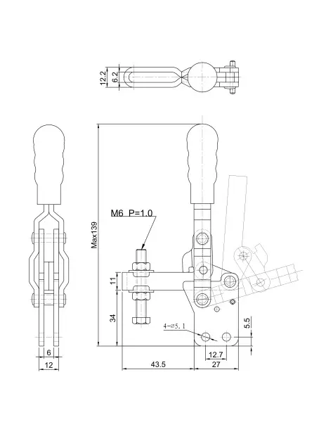 Угол раскрытия прижимной штанги, град.