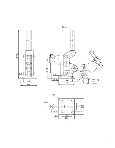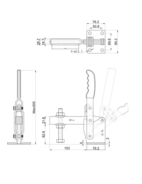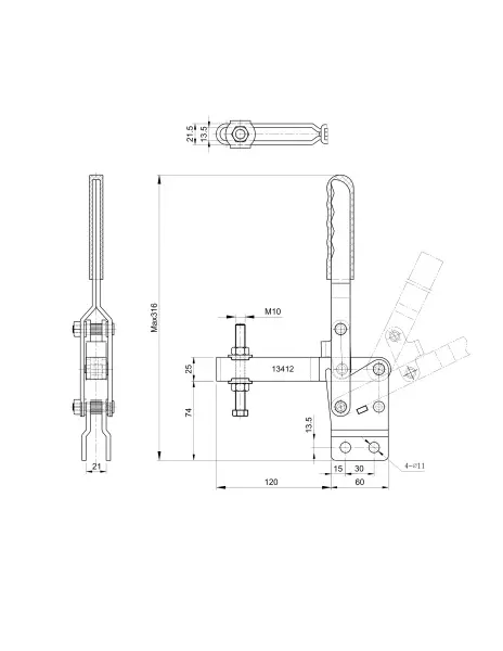 Угол раскрытия прижимной штанги, град.