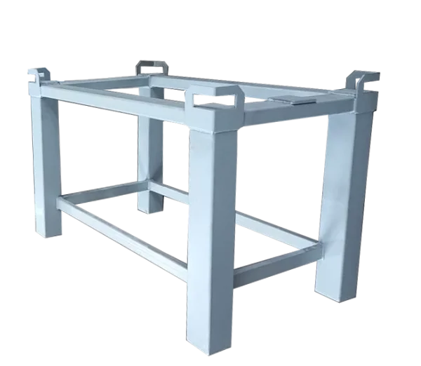 The stand (frame) is a metal structure with threaded holes for plate fixation. Standard stand height is 600 mm. Optionally, height can be increased and adjustable legs can be installed. The stand is suitable for both T-slot mounting plates and surface plates. - Height from floor to plate working surface 800 mm - Fine leg adjustment range 50 mm - Stand load capacity 15t - Option for custom execution |