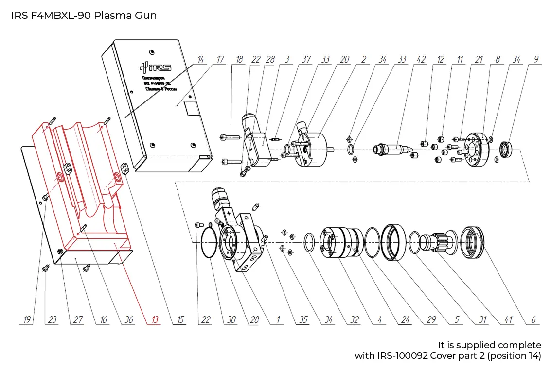 IRS-100091 Cover IRS F4MB90-XL part 1 is supplied complete with IRS-100092 Cover part 2. Compatible with F4-90 plasma gun model, on the F4-90 plasma gun diagram it is displayed as position 13