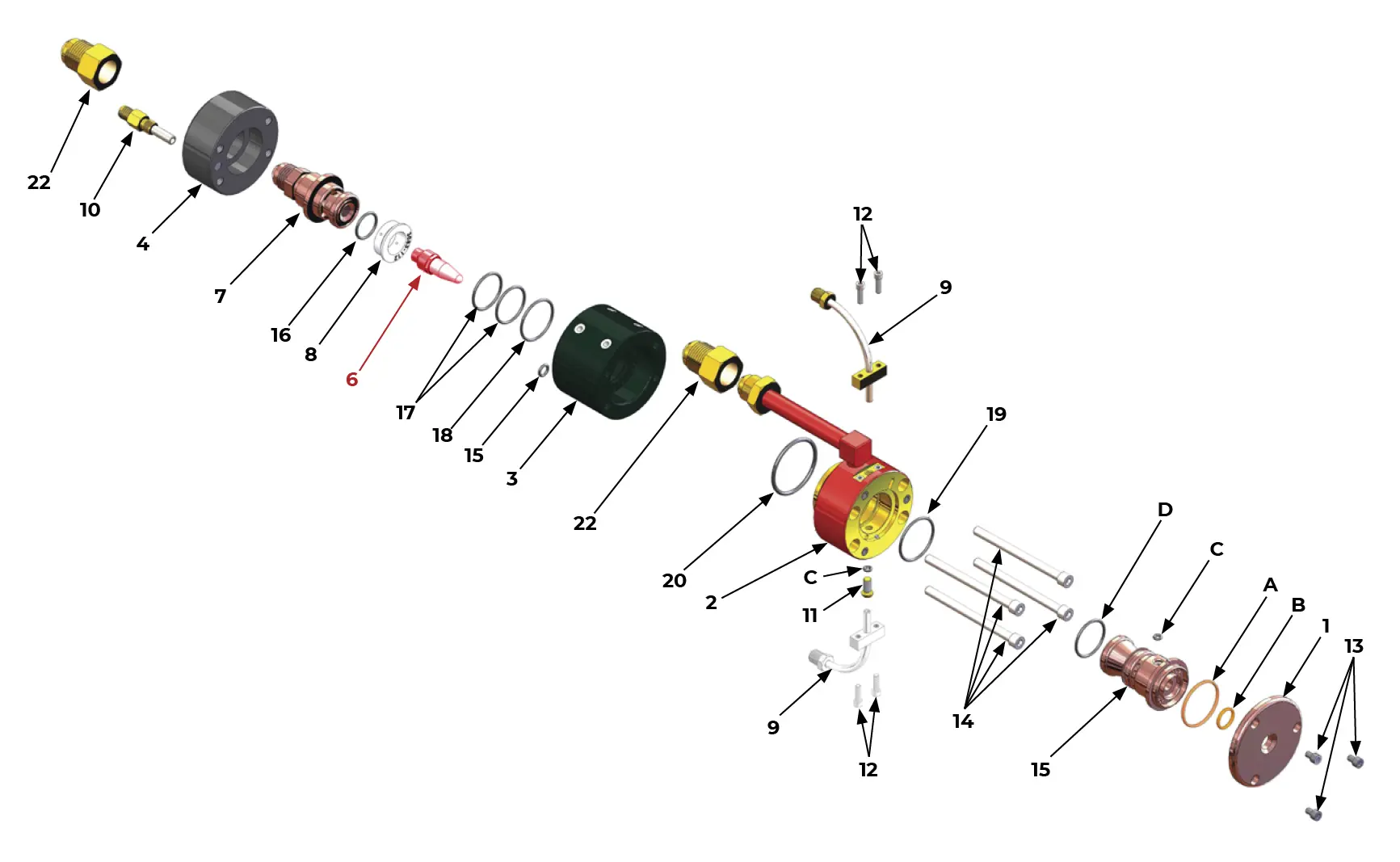 | 18 | IRS-300012 | O-RING, MIDDLE TORCH HSG, CATHODE HOLDER SEAL | 2-024S | 307.042 |