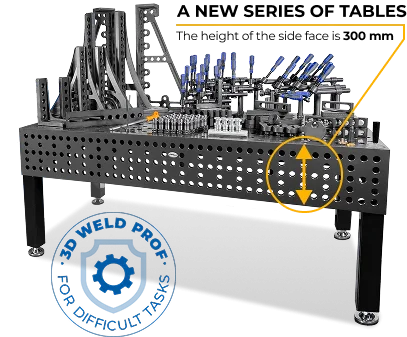 You can purchase a 3D welding table with increased side wall height of 300 or 400 mm, significantly expanding fixation options for complex structures.